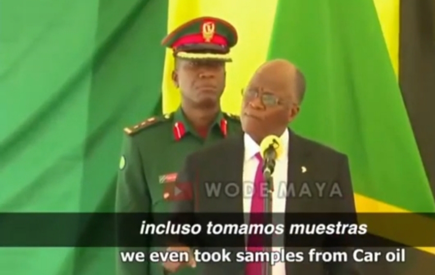 En la conferencia, el mandatario de Tanzania, John Magufuli, dio a conocer que de manera secreta se mandaron al laboratorio muestras de animales, frutas y aceite de máquina como si fueran de personas. Tras realizarse las pruebas una papaya, una codorniz y una cabra dieron positivo percatándose de esa forma que están haciendo un juego sucio haciendo que cada muestra sea supuestamente «positivo de COVID19».